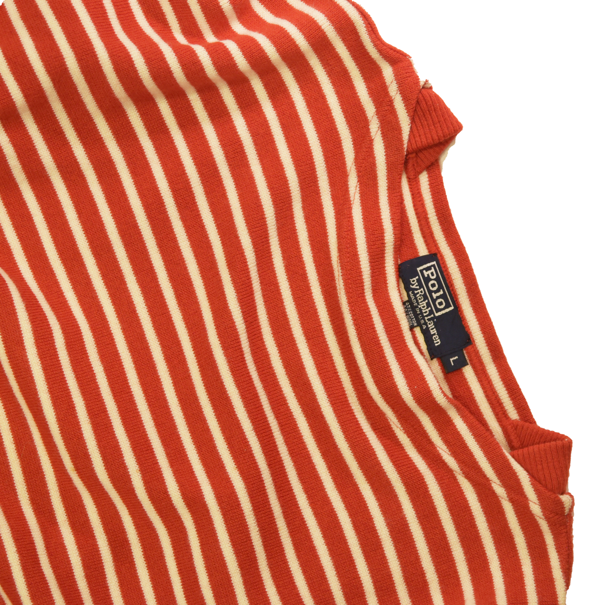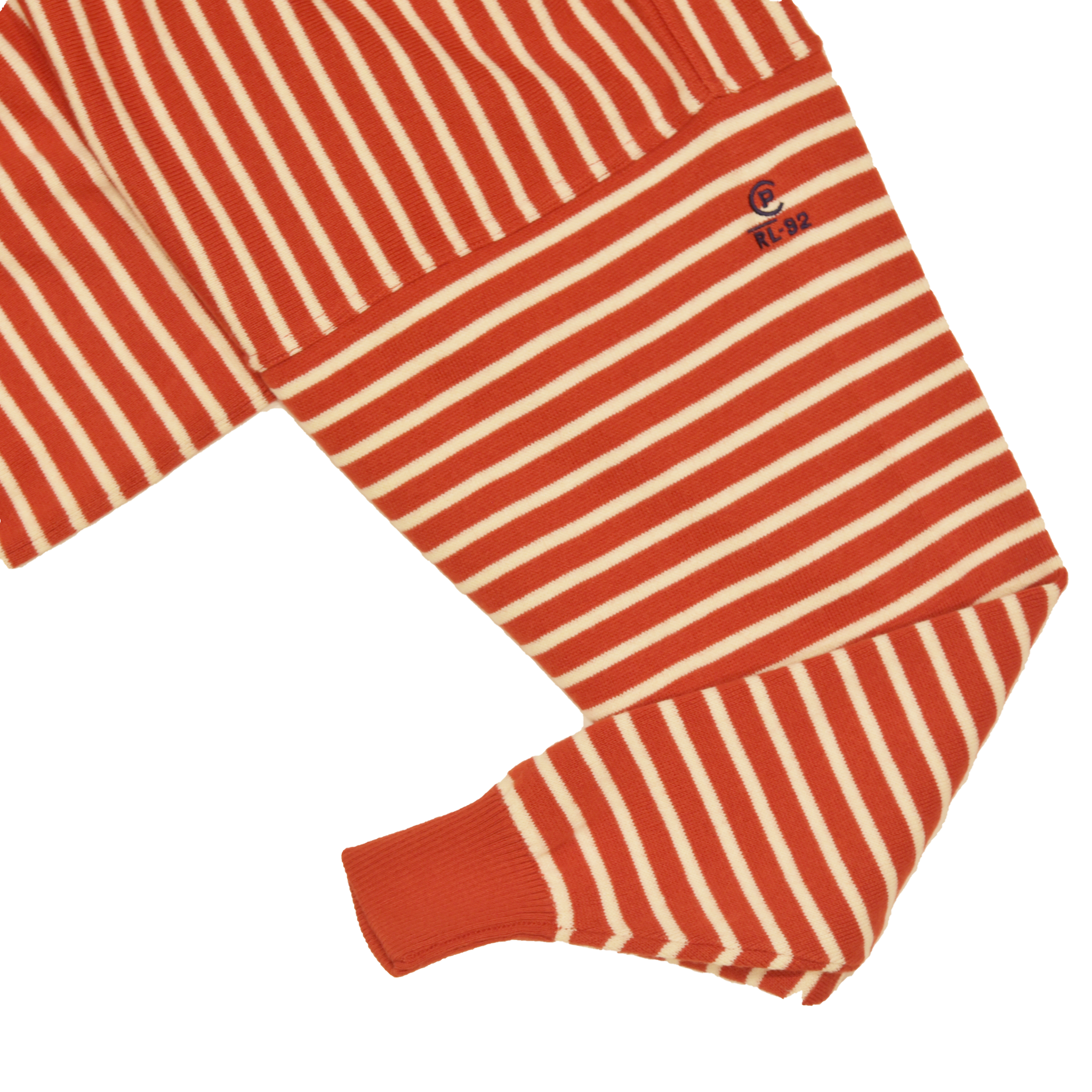 1990年代のRalph LaurenのStripe Sweaterになります。Cashmereが混率するとこうも上品で万能になる。襟の遊び心もヨーロッパが漂っていて心地良い。ストライプのセーターって意外に程度の良いものが見つかりません。夏にショーツと合わせたいセーターかも。